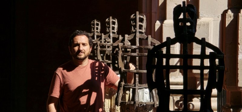 Conceptualmente, el artista explora la relación entre cuerpo, espacio y subjetividad. Su trabajo es un diálogo continuo con el pensamiento, la literatura y las teorías sobre la corporalidad y la producción material de la sensibilidad humana. Estos “seres” funcionan como una arqueología de la expresión y la interioridad humana. Utilizando materiales como el hierro, el bronce y la resina, se propone una síntesis de lo orgánico y lo artificial, donde se conforma una fusión que no es solo estética sino también conceptual. El metal, con su durabilidad y resistencia, sirve como metáfora de la permanencia del espíritu humano, mientras que la resina, con su maleabilidad y opacidad, alude a la fluidez y adaptabilidad de la conciencia. De forma inherente se cuestionan y analizan las complejas relaciones entre el cuerpo y la psique humanas en contraposición con la tecnología propia de esta decada.