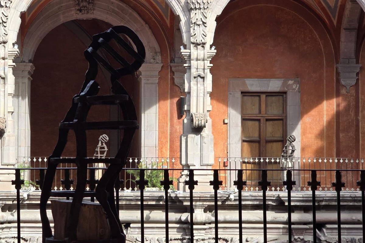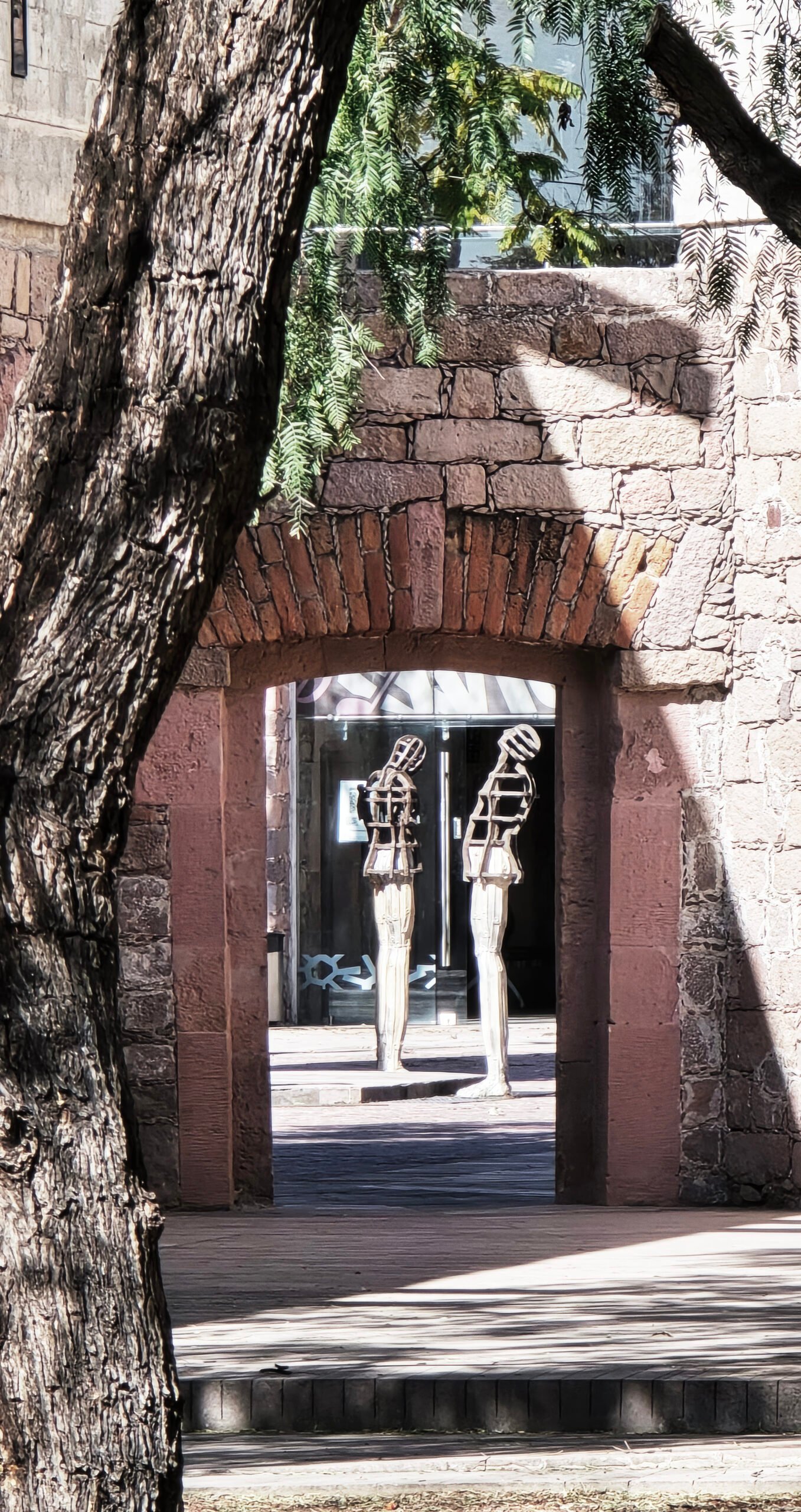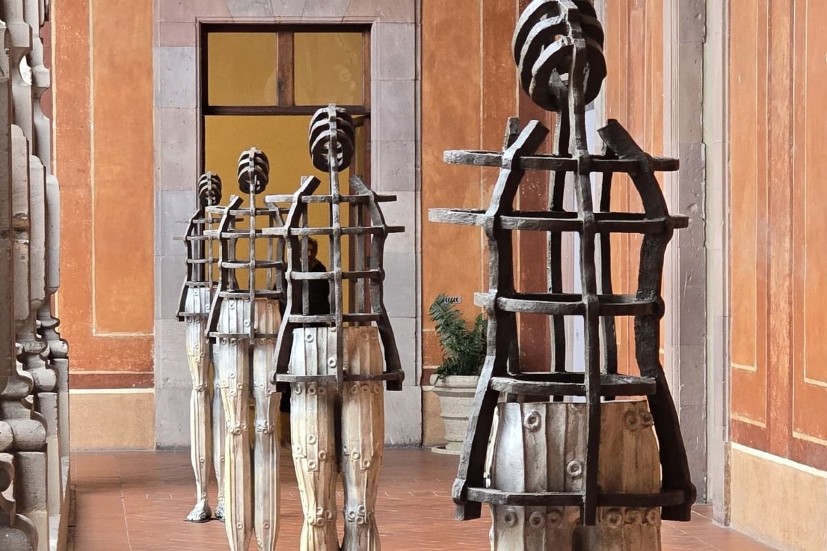Reconfigura el Panóptico del Centro de las Artes de San Luis Potosí en un compás de miradas divergentes, donde el cuerpo escultórico se convierte en una metáfora de la resistencia humana. La torre central, concebida bajo el modelo panóptico ideado por Jeremy Bentham, se erige como el pulso del poder, y las ocho esculturas son latidos que dialogan con su dominio.