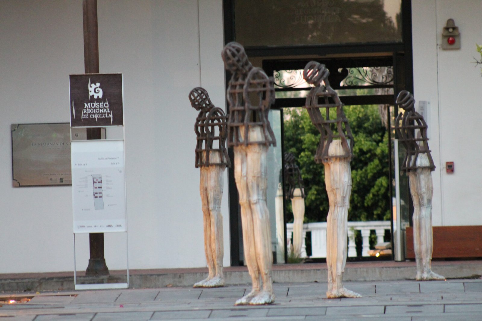 La obra de Joaquín Restrepo se instala en la explanada del Museo Regional de Cholula como un eco profundo de los rituales ancestrales que definieron este territorio sagrado. Bajo la sombra de la Gran Pirámide de Cholula y del Santuario de la Virgen de los Remedios, sus esculturas no solo ocupan un espacio físico, sino que lo transforman en un escenario donde la memoria y el presente convergen.