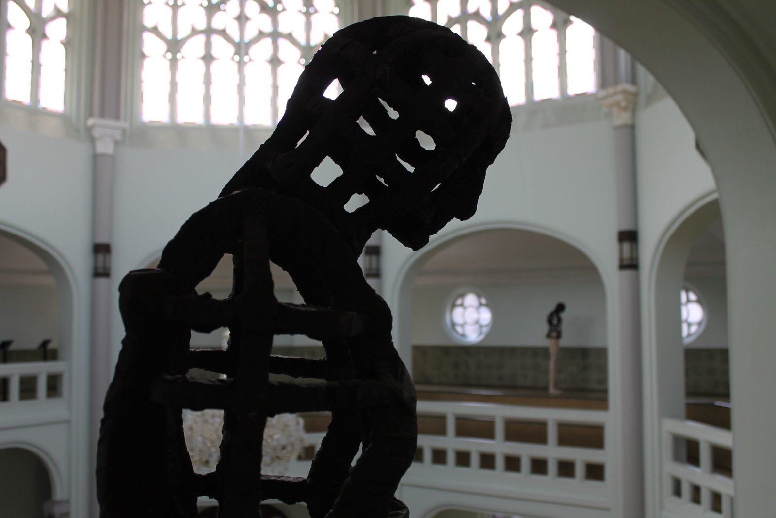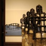 Pero en este tránsito también resuenan silencios. Un silencio denso, vibrante, cargado de las voces que fueron acalladas, de los relatos que quedaron suspendidos. Las esculturas de Restrepo parecen susurrar aquello que no se dice, abriendo grietas en los discursos históricos para dejar escapar las tensiones entre lo que fue y lo que permanece oculto. Esta reverberación entre lo dicho y lo callado convierte el espacio en un eco constante donde cada visitante confronta sus propios fantasmas.