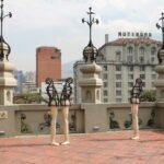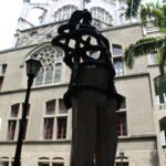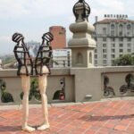 Una de las características más notables de estas esculturas es su cualidad atemporal, un atributo que trasciende las barreras del tiempo y las convenciones artísticas. Los seres escultóricos que habitan tanto el interior del Palacio de la Cultura como la Plaza Botero resuenan con igual intensidad en el pasado y presente del arte. Esta capacidad única crea un puente metafórico entre diferentes épocas, culturas y experiencias humanas, permitiendo que espectadores de distintos periodos pudieran conectarse con la esencia de la obra. En particular, la obra de metal que domina el espacio exterior crea una composición dinámica que no solo ejemplifica la atemporalidad mencionada, sino que también invita a reflexionar sobre la evolución del arte en el espacio público, desde la representación tradicional hasta la abstracción contemporánea. El emplazamiento estratégico de la obra, frente a la arquitectura moderna y rodeada de elementos naturales, crea un microcosmos que encapsula la tensión entre naturaleza, urbanidad y expresión artística.