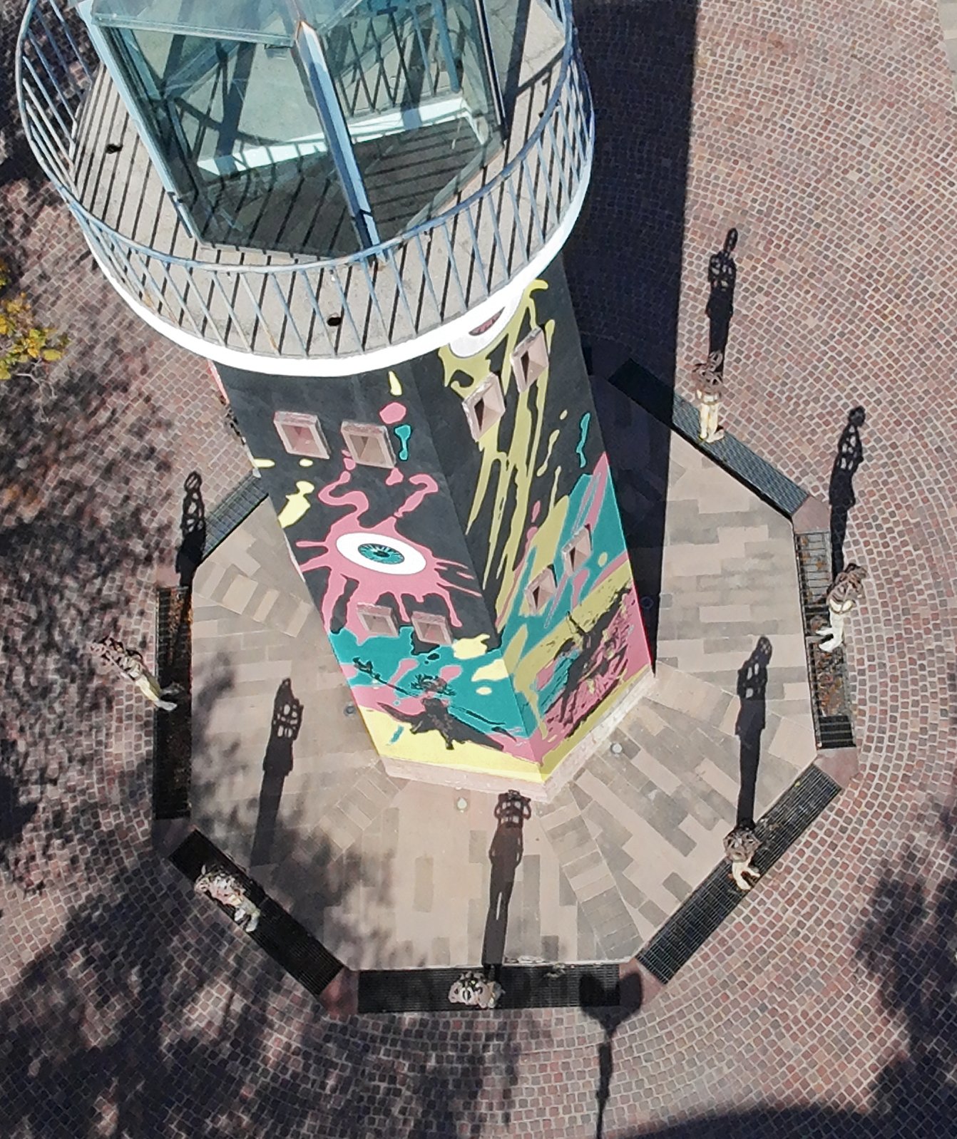 Por otro lado, las esculturas que miran hacia abajo denuncian la persistencia de la historia encapsulada en los edificios que las rodean, sugiriendo una meditación sobre el peso de la memoria y la capacidad del espacio para moldear la experiencia humana. La instalación confronta la memoria colectiva de un espacio que, desde su inauguración en 1904 como penitenciaría estatal, ha sido testigo de innumerables vidas y secretos. Durante más de un siglo, los muros del Panóptico resguardaron historias de reclusión, resistencia y redención.