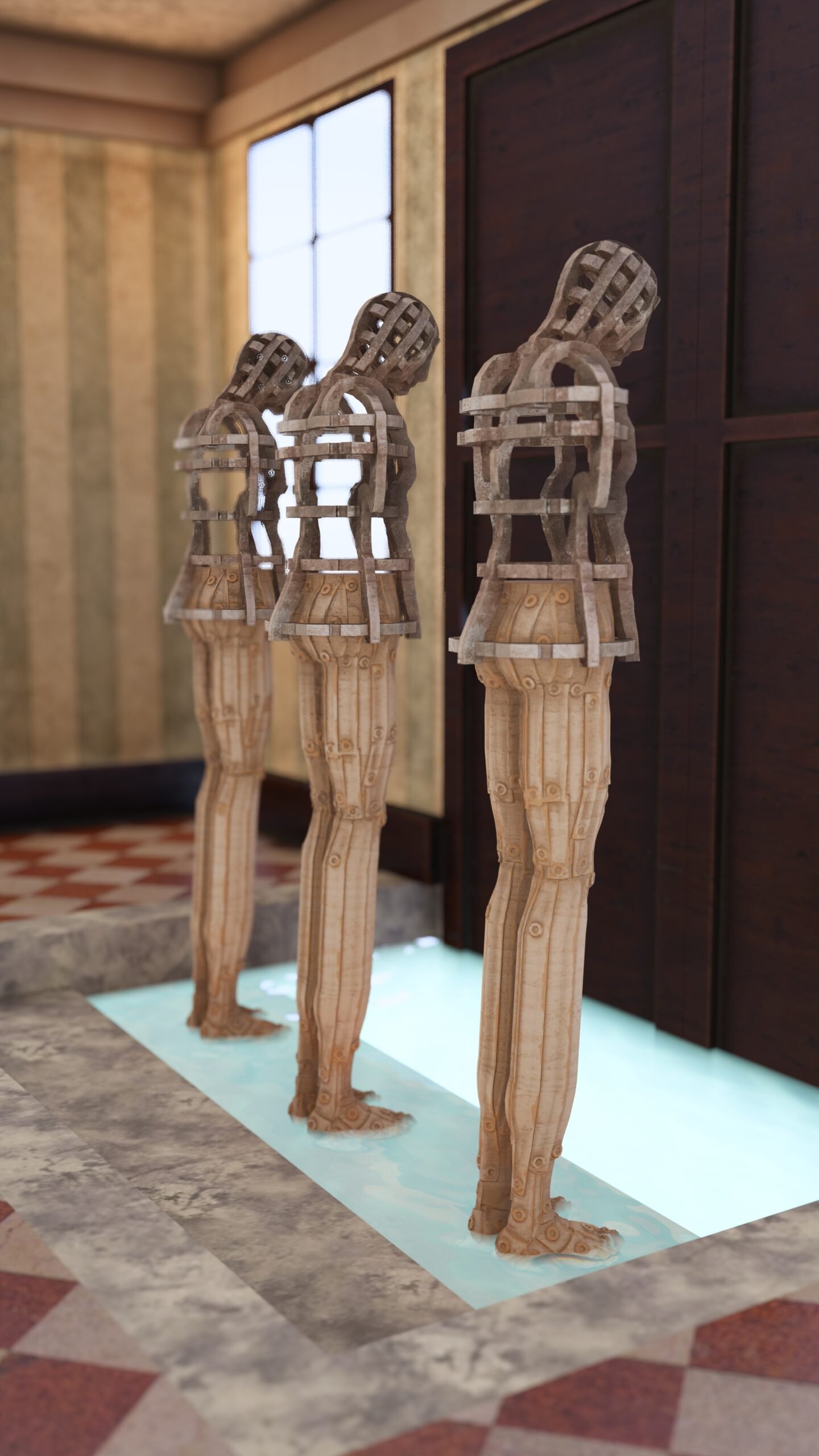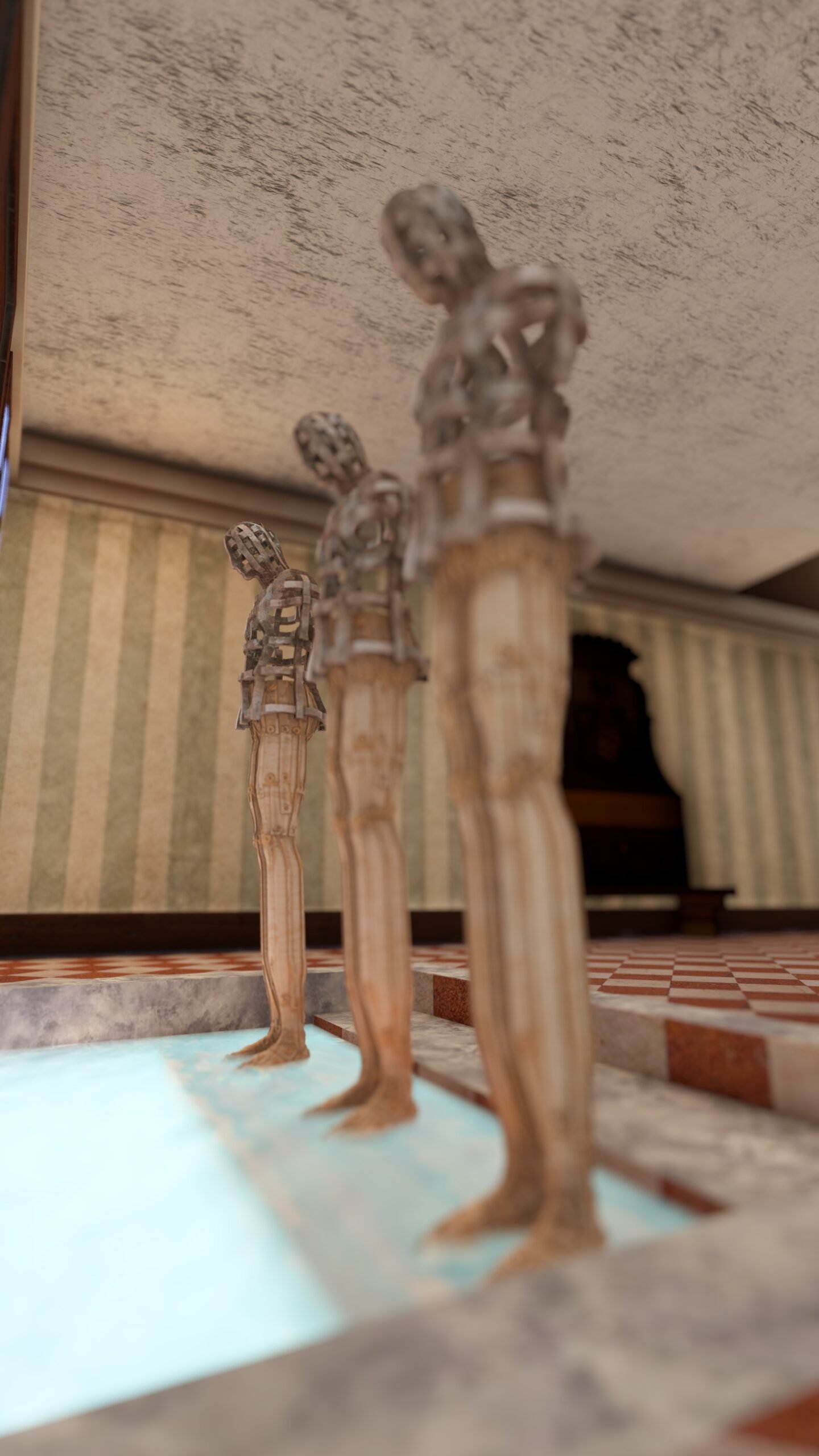 El exilio concluye únicamente cuando el duelo logra encontrar cierre—algo que casi nunca llega—aun cuando el cuerpo ya haya abandonado un territorio. Por esta razón, estas figuras evitan representar la partida y rehúsan celebrar la posibilidad del retorno, permaneciendo en cambio en esa profunda tensión entre estados contradictorios, como cuerpos desplazados que sostienen una raíz ausente, imposible de reconciliar con el presente.